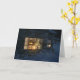 Olhando nas janelas da cabana numa noite de inverno gelada antes do Natal. Velas vermelhas brilhantes estão acesas, mandando um brilho quente sobre a neve. A árvore de Natal e o manto são decorados com creme e bolas de ouro. Um gato calico olha pela janela com uma galinha sentada do lado de fora, e um par de raposas percorre o canto da casinha.