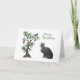 Um gato cinza e branco olha para cima uma árvore de Natal com enfeites pendurados. Envie este lindo cartão de Natal de gato este ano.