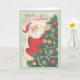 Vintage / Cartão de saudação de Natal Retroativo. Linda e velha moda Papai Noel montando uma árvore de Natal. Feliz Natal!