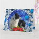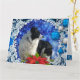 Um sumptuoso cartão de Natal para collie de fronteira e amantes de cachorro em todo lugar. Apresentando um tema azul e branco com borbulhas e efeito folha com o mesmo design no dentro. Vazio esquerdo para escrever sua própria mensagem e disponível em vários tamanhos na horizontal e na vertical. Imagem Collie exclusiva de Zazzle.
