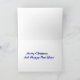 Cartão de saudação de Natal com pintura de fazenda de neve de inverno e dentro.