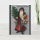 Uma imagem clássica e sofisticada da era vitoriana do Papai Noel carregando uma árvore e brinquedos está na frente deste cartão de saudação de Natal. Celebre o Natal à moda antiga! A mensagem dentro é facilmente personalizada, se você quiser alterá-la.