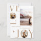 Celebre o calor e a maravilha da estação com este belamente moderno Cartões de foto de Natal "Amor e Alegria". Apresentando um layout elegante e limpo, com tipografia ousada e espaço para três fotos familiares queridas, este cartão de feriado captura memórias incríveis em um design moderno e mínimo. Os tons neutros suaves e o uso artístico do espaço negativo trazem um toque refinado e na moda para seus cartões de natal. Personalize-o com seu nome familiar e ano para torná-lo verdadeiramente seu. Ideal para famílias que querem enviar uma mensagem alegre nesta época de Natal. Ajustados três fotos da família 2 em um quadro circular na moda e 1 imagem retangular grande