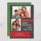 Este cartão de Natal customizável de dois quadros da foto caracteriza um fundo cinzento do quadro com o fraseio: Feliz Natal e feliz ano novo escritos no giz branco. Uma bandeira vermelha na parte inferior do cartão caracteriza o tipo customizável para que você adicione seus nomes de família. A parte traseira deste cartão tem um teste padrão de bolinhas vermelho, cinzento e verde.