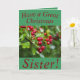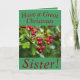 Cartão de Natal para Irmã com amoras vermelhas e adoráveis. Todo o texto pode ser facilmente personalizado como desejar.