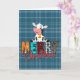 Cartão de Natal da Vaca do Natal Xadrez Azul