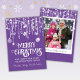 Foto roxa e corda branca Luz o cartão de Natal com uma diversão caprichosa e cartões de natal festivo.