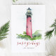 Este simples cartão de feriado apresenta uma réplica da minha aquarela original pintada à mão do farol de Jupiter, Flórida, com uma grinalda de folhagens e frutas vermelhas em um fundo branco crocante. As palavras "Seas and Greetings" estão em uma tipografia moderna de pincel. Personalize como quiser. Este cartão de Natal de estilo costeiro reverte para uma cor vermelha intensa. Uma escolha fofa para dizer obrigado ao seu cuidador e enviar para amigos e familiares nesta temporada de Natal. Para ver mais designs de cartões de Natal de praia de Victoria Grigaliunas, visite DoTellABelle no Zazzle.