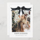Deseje a sua família e amigos Feliz Natal com um arco de Natal preto personalizado, com fotografia de Natal, mostrando a sua família na frente embrulhada como um presente de Natal em um arco preto e fitas, além de um lado de trás com fotos adicionais e uma nota de Natal editável. Estes cartões de natal de fotos de Natal preto são uma forma perfeita de compartilhar os votos de festas e desejos para uma feliz temporada de festas. A coleção CORBIN apresenta uma foto de sua família com uma mensagem de Feliz Natal editável na frente e no ano em um par de fontes serif a preto. As fitas magnéticas e um arco preto de coquete adoram um cartão de feriado fotográfico que mostra a foto da sua família. Um verso opcional é incluído com três fotos da família e uma nota, juntamente com um arco preto e uma fita.