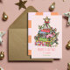 Cartão de Natal de Árvore de Livro Branco Rosa