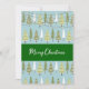 Design de cartão único com Árvores de Natal na frente. As palavras podem ser alteradas no interior. As cores são azul, branco e verde. Obrigado ao Hungryjpeg por alguns dos elementos do design.