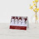 Quatro bonecos de neve fofos e jovens com gorros de tricô. Um não vê o mal, um não fala o mal, um não ouve o mal, enquanto o quarto acaba de ver o Papai Noel! Um cartão de Natal engraçado e fofo que certamente vai deliciar todos que o virem.