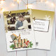 Fundo de ouro russo com flocos de neve brancos, azuis e dourados, botas de menino dele e dela com poinsettias e bagas de pínus, cartão de Natal.