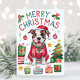 Um cartão de Natal "Boxer Dog", com um adorável Boxer Dog vestindo um chapéu de Papai Noel cercado por decoração de Natal. Personalize com seu texto de saudação.