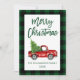 Roteiro do Pincel Watercolor Vintage Red Truck com Árvore de Natal - Cartão de Natal da Xadrez Verde