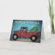 Um caminhão vermelho em um cartão de Natal de cena de neve.