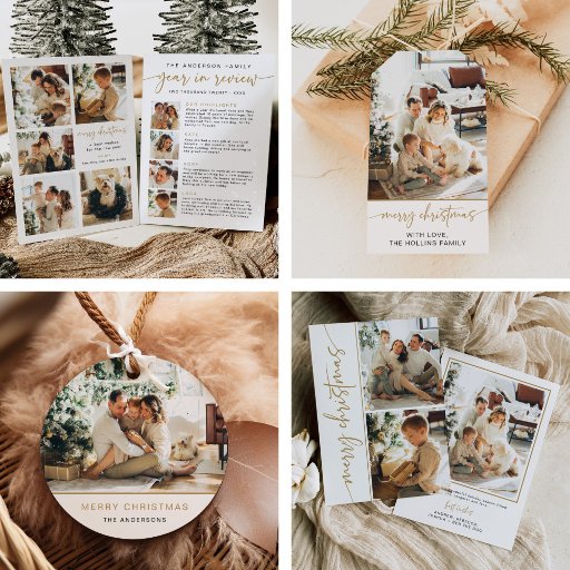 Este cartão de feriado na moda do seu animal de estimação apresenta um design contemporâneo dourado com uma fonte moderna e o texto "feliz feriado". Há espaço para duas fotos na frente e uma no verso. É perfeito para um cartões de natal elegante e você pode combiná-lo com qualquer coisa na coleção EVE para um olhar coeso.