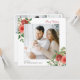 Este belo cartão de Natal apresenta elegantes flores vermelhas com cor d'água com bagas ocas, pinecones e verde sobre fundo branco com uma foto quadrada. A parte de trás do cartão contém 3 fotos e uma mensagem para personalização. Localize itens correspondentes na Coleção de Natal Botânico de inverno Vermelho Feriado.