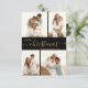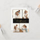 O moderno, minimalista, elegante "Feliz Natal", Script 4 de Feriado de Natal para Colagem de Fotos, em preto e ouro. Este cartão festivo, claro e minimalista, quatro (4) fotos da família apresenta uma bonito colagem fotográfica em grade e diz "Feliz Natal"! O script de texto de saudação de "Natal" é escrito em um tipo de fonte de texto de balanço suave e suave. Na parte de trás, uma foto e sua mensagem. Bonito cartão de boas-vindas para sua família e amigos na temporada de festas de inverno.