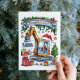 Cartão de Natal de construção caprichoso em aquarela. Personalize com o seu próprio texto de saudação.
