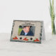Cartão de Natal de estilo ocidental, com imagem de madeira de celeiro velha e pergaminho rasgado, estrelas e pimentos quentes vermelhos. Modelo fácil de inserir sua própria foto.