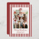Celebre a temporada com este cartão de Natal listrado e vermelho moderno, maravilhosamente projetado para mostrar sua foto favorita da família. Apresentando riscas brancas e vermelhas ousadas, um encantador arco pintado à mão, e uma elegante letra estilo script, este cartão combina a tradição clássica de feriado com um aspecto novo e contemporâneo. A sua disposição clara e os seus pormenores festivos fazem dela a escolha perfeita para partilhar desejos de férias com amigos e entes queridos. Quer você prefira acolhedor e chique ou ousado e eterno, esta carta captura a alegria da estação com listras, tons vermelhos vibrantes e uma mensagem sincera. Perfeito para famílias modernas, minimalistas, e qualquer um que aprecie a papelaria de Natal na moda.