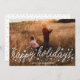 Feliz Holidays Script em branco brilhante, desejando aos seus entes queridos em estilo. Sua foto no verso ou o padrão atual de apoio. Estilo de caligrafia tradicional. Estilo de inscrição. Grande design de fotos. Feliz, design festiva.