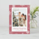 Cartão de Natal cor-de-rosa com flocos de neve, com flocos de neve em fundo rosa-neve. Personalize facilmente este cartão fotográfico de Natal com a sua fotografia e o seu nome familiar.