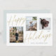 Este cartão de Natal de foto casual, mas elegante, apresenta três fotos e lê "Feliz Natal" em uma fonte de script de folha de ouro falsa.