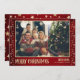 Comemore a época de férias com este belo cartão de Natal fotográfico que apresenta a sua foto familiar emoldurada por uma festiva borda vermelha com estrelas ouros. Este design elegante captura o calor e a alegria do Natal, fazer que seja uma maravilhosa manutenção para os seus entes queridos. Personalize facilmente com seu nome de família para torná-lo realmente único. Perfeito por compartilhar alegria de férias e enviar desejos calorosos a amigos, parentes e colegas durante esta época mágica do ano.