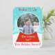 Agite nesta temporada de festas com este cartão de foto de Natal personalizável de globo de neve! O design apresenta um globo de neve sentado em uma cena tão perfeita que normalmente só é vista dentro de um globo de neve. O globo tem uma base vermelha e uma esfera pronta para sua foto favorita. Basta substituir a foto do modelo pela sua. Uma leve poeira de flocos de neve vai flutuar sobre sua foto, dando a ilusão de um globo de neve real. Além disso, personalize a base com sua mensagem especial de Natal. Este globo de neve kitsch está sentado sobre uma cama fofa de neve fresca, contra um fundo de céu aqua. Silhuetas de árvores de cedro minimalistas em azul claro são visíveis e neve azul clara está caindo do céu. Escrito em vermelho, a parte superior do cartão diz "Agite" e a parte inferior diz "Nesta temporada de festas!". O lado oposto deste cartão caprichoso é aqua com bolas de neve azul claro. Este cartão é tão fofo que certamente vai adornar a frente das geladeiras de seus amigos