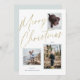 Este cartão de Natal de foto casual, mas elegante, apresenta três fotos e lê "Feliz Natal" em uma fonte de script em folha dourada falsa.
