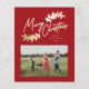 Um roteiro de orçamento vermelho e galhos de folha de ouro 2 fotos Cartão de Natal Merry com simples tipografia. Clique no botão editar para personalizar este design.