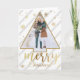 Cartão de Natal de Foto Dourado e Stripe com Flocos de Neve. Modelo fácil de usar.