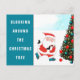 Cartões engraçados de Natal com Papais noeis jogando futebol, bloqueando em torno de uma árvore de Natal.