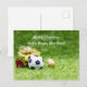Cartão de Natal de Futebol com bolas e caixas de presentes com grama verde