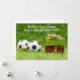 Cartão de Natal de Futebol com bolas e caixas de presentes com grama verde