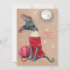 Cartão de Natal com gato Sphynx fofo. Desenhada pela artista polonesa Monika Przerwa-Tetmajer. Blue Spynx Can com grandes olhos verdes bonitos olhando para você, lua brilhando ao fundo :)