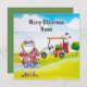 Cartão de Natal de Golfe com carrinho de Golf e golfe clube