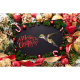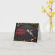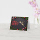 Cartão de Natal de Hummingbird com canetas doces e ornamentos à volta da borda.