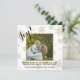 Este belo cartão de Natal ou Feriado é festivo, elegante e divertido. Ele apresenta um fundo branco coberto com flocos de neve dourados e uma foto quadrada. A legenda diz: Joy! Há espaço para uma mensagem curta. Uma bela maneira de enviar as saudações de Season.