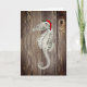 Um cavalo marinho vintage vestindo um chapéu de Papai Noel é colocado sobre um fundo rústico de conselhos de madeira para fazer esta praia de excelente e o cartão de Natal do mar. O dentro é vazio para sua própria mensagem pessoal.