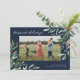 Uma elegante tipografia de natal em qualquer design azul com quadro foliar verde de inverno