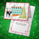 Adorável design do século médio com um gato vestindo um chapéu de Papai Noel e um rato vestindo um chapéu de elfo ao lado de um retrorreflector que você pode personalizar com seu nome de família na frente e uma árvore de Natal ao lado.
