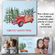 Este cartão de Natal com estilo retro único mostra três das suas fotografias com um tema divertido de inverno. A frente tem um carregando de madeira vermelha de painel de madeira vintage, uma árvore de Natal recentemente cortada, com uma floresta coberta de neve atrás dela. Seu texto personalizado está em vermelho embaixo. O dentro da placa tripartida tem duas modelos para suas fotografias personalizadas e uma seção do meio com seu texto personalizado. O meio também tem uma segunda imagem do mesmo carro. O verso tem outro modelo fotográfico, e uma coroa com seu monograma e texto. Todo o texto é facilmente personalizado.