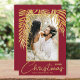 Frentes de palma brilhantes douradas brilhantes realçam sua foto favorita nesses Cartões de foto de Natal vermelhos de fundo de feriado. Selecione Matte para o papel mais pesado e alta definição para melhor qualidade.