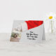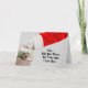 Cartão de Natal de um cão de estimação que quer ficar com o seu pai, e não ir com Papais noeis. O cão está numa cesta em que o braço dos Papais noeis está a carregando. as palavras no dentro podem ser mudadas. Obrigados para Dealjumbo para o braço e cesto dos Papais noeis.
