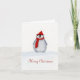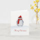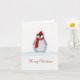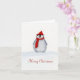 Cartão de nota de pinguim de Natal pintado à mão em aquarela.