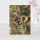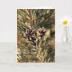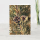 Arte original consistindo na minha fotografia original de pinhas em um galho de pinheiro e processada em um estilo impressionista e pictórico. O interior do cartão diz "Desejando um Natal Alegre e Feliz e um Ano Novo Feliz!" para um bom cumprimento de Natal. Você pode adicionar mais texto como quiser ou deixar como está!