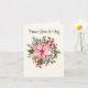 Grande buquê de poinsettia rosa elegante, bagas e folhagem na frente, com um pequeno pano de poinsettia correspondente no final decoram este cartão de Natal de 4"x5.6" com fundo branco floral. O guião elegante é um verde escuro tirado de uma das folhas. Altere facilmente o complemento ou remova o texto na frente, no dentro e de trás para torná-lo seu usando o Modelo fornecido. Também disponível no tamanho de 5 x 7". Consulte "Sobre este produto" ao lado para obter mais informações.